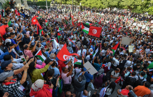 تظاهر عشرات التونسيين، ضد استمرار جرائم الإبادة التي يرتكبها كيان الاحتلال بغزة، وجاء ذلك خلال وقفة نظمتها جمعية أنصار فلسطين في تونس، ورفع المحتجون الأعلام الفلسطينية وشعارات من بينها: "بالروح بالدم.. نفديك فلسطين" و"فلسطين لن ننساك الشعب التونسي كله معاك".