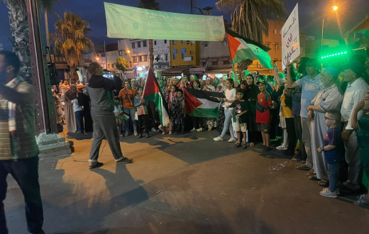 نظمت الجبهة المغربية لدعم فلسطين وقفة احتجاجية في ساحة الكرامة بمدينة المحمدية، ورفعت خلال الوقفة صور المدونين عبد الرحمن زنكاط وسعيد بوكيوض ومصطفى دكار الذين اعتقلوا على خلفية تدويناتهم المساندة للقضية الفلسطينية والمتضامنة مع أهل غزة، ورفع أيضًا خلالها المحتجون الأعلام الفلسطينية والصور المؤيدة لفلسطين وهتفوا منددين بجرائم المحتل والتواطئ المفضوح للسلطات الرسمية في تعاملها مع القضية الفلسطينية.