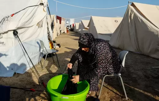 تتعرض مخيمات النزوح وسط قطاع غزة لكارثة وبائية جديدة، خاصة مع انتشار مرض "الجرب" الجلدي، سريع العدوى، والذي تفشى جراء تراكم مياه الصرف الصحي بين الخيام وانعدام النظافة الشخصية بسبب نقص المياه والمنظفات.