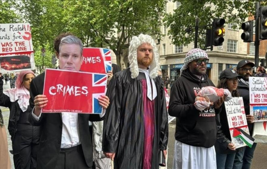 طالب عشرات آلاف المتضامنين مع فلسطين في العاصمة البريطانية لندن حكومتهم الجديدة بوقف بيع السلاح لـ"إسرائيل" وأطلق المتظاهرون هتافات من قبيل "فلسطين حرة من النهر إلى البحر"، و"فلسطين حرة"، كما طالب المتظاهرون الحكومة البريطانية الجديدة بالضغط على "إسرائيل" لوقف إطلاق النار في غزة، والتوقف عن تزويدها بالسلاح.