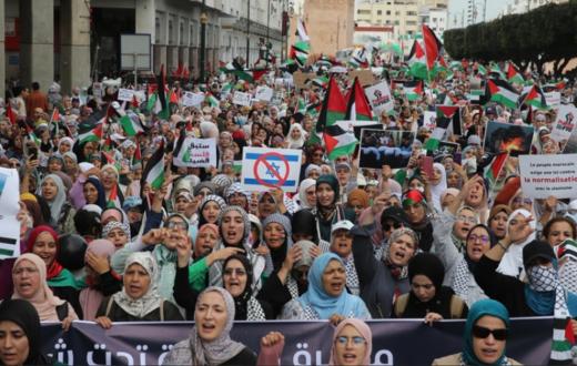 تظاهر آلاف المغاربة في مدينة طنجة، تضامنًا مع غزة ورفضًا للحرب الصهيونية المدمرة التي يتعرض لها القطاع منذ 7 أكتوبر/ تشرين الأول الماضي؛ وجابت المظاهرة التي دعت إليها هيئات مدنية، مثل "الجبهة المغربية لدعم فلسطين" شوارع رئيسية بطنجة، انطلاقًا من ساحة إيبيريا وسط المدينة، وعبّر المتظاهرون عن رفضهم لكل أشكال التطبيع مع الاحتلال، مطالبين بضرورة الضغط على الأخيرة لتوقيف "الإبادة الجماعية" في حق الفلسطينيين.