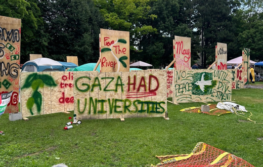 "غزة لديها جامعات".. رفع طلاب مؤيدون لفلسطين في مخيم التضامن مع غزة في جامعة أوتاوا الكندية شعار لتذكير العالم بالطلاب الفلسطينيين الذين لن يتخرجوا هذا العام في قطاع غزة بسبب الهجمات الصهيونية في القطاع وقصف المؤسسات التعليمية هناك.