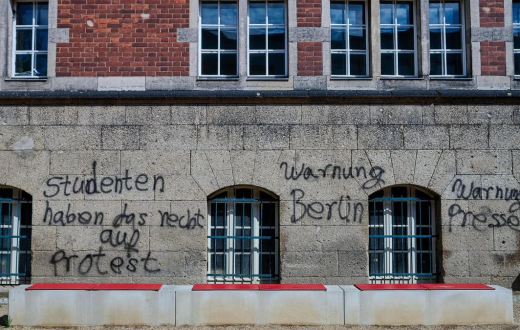 خط نُشطاء العديد من الشعارات المؤيدة لفلسطين على جدران مدرسة تيرغارتن في برلين من قبيل، "غزة ستكون حرة"، "إذا احترقت غزة، فإن برلين تحترق" و"للطلاب الحق في الاحتجاج" وكذلك "تحذير برلين" و"تحذير الصحافة".