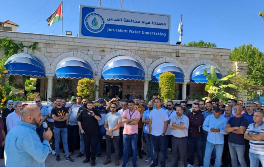 احتج المئات من العاملين بمصلحة مياه محافظة القدس أمام مقر المصلحة في مدينة رام الله وسط الضفة ضد سياسات التعطيش التي يمارسها الاحتلال الإسرائيلي، وسبّبت أزمة مياه كبيرة.