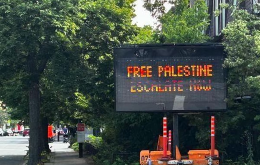 أجرت شرطة مونتريال تحقيقًا بعد أن عرضت لوحات الرسائل الإلكترونية في موقعين لبناء الطرق شعارات سياسية مؤيدة للفلسطينيين بدلاً من تنبيهات المرور المعتادة، فقد تم اختراق لوحات الرسائل التي تنصح سائقي السيارات عادة بأشغال الطرق لعرض عبارات مثل "فلسطين حرة"، و"تصعيد الآن"، و"عولمة الانتفاضة".
