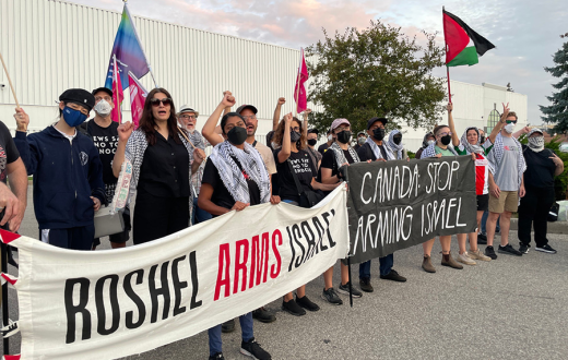 احتشد 100 متظاهر مؤيد للفلسطينيين من جميع أنحاء منطقة تورونتو الكبرى في كندا وحاصروا منشأة لتصنيع المركبات المدرعة "روشيل"، ومنعوا العاملين في نوبة الصباح من دخول المصنع، وشبك المتظاهرون أذرعهم أمام الممرات، وحملوا لافتات مكتوب عليها "روشيل تسلح إسرائيل"، و"حظر الأسلحة على إسرائيل الآن"، و"عمال ضد الحرب".