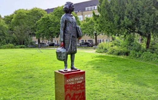 قام نُشطاء مؤيدين لفلسطين برش قاعدة تمثال "آن فرانك" في أمستردام بشعار "حرروا غزة"، بينما تم طلاء يدي التمثال بنفس اللون الأحمر الذي يعبر عن الإبادة المستمرة في قطاع غزة، وهذه هي المرة الثانية في أقل من شهر التي يتم فيها استهداف تمثال أحد أشهر ضحايا الهولوكوست في العالم.