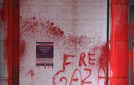استهدف نُشطاء من "حركة فلسطين" ملعب تويكنهام في لندن لدعمه الإبادة المستمرة ضد الفلسطينيين في قطاع غزة وذلك من خلال تنظيم معرض للأسلحة الدولي يشمل مركبات مدرعة يتم استخدامها في حرب غزة، حيث قام النشطاء بتحطيم الواجهات وتلطيخها بالطلاء الأحمر.