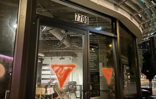 استهدف ناشطون مؤيدون لفلسطين مقهى "ستاربكس" في وسط مدينة بيثيسدا بولاية ماريلاند، وقاموا بتلطيخ واجهاته بالطلاء الأحمر وخط شعارات مثل "ستاربكس تدعم الإبادة الجماعية!" ورسموا مثلث الاستهداف باللون الأحمر احتجاجًا على دعم الشركة لكيان الاحتلال الذي يواصل ذبح الفلسطينيين في غزة منذ 10 أشهر.