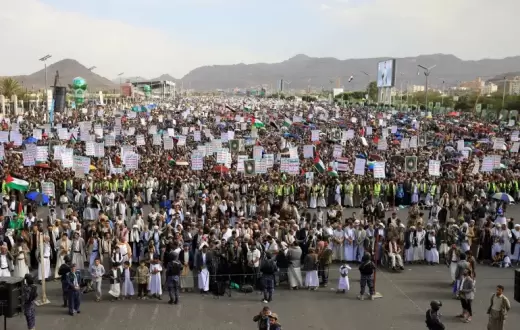 تظاهر عشرات آلاف اليمنيين أمس الجمعة، تحت شعار (للأقصى وغزة، الإسناد مستمر والرد قادم) تنديدًا بالمجازر التي يرتكبها جيش الاحتلال الإسرائيلي في قطاع غزة، واقتحام مستوطنين إسرائيليين باحات المسجد الأقصى، وردد المشاركون في المسيرة، هتافات معبرة عن الاستنكار لحالة التخاذل العربي والإسلامي تجاه ما يتعرض له الفلسطينيون بغزة من إبادة ومجازر مروعة وحصار وتجويع.
