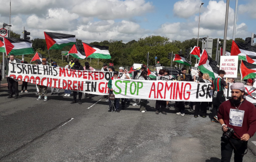 شارك مئات المحتجين في حصار مصنع أسلحة تابع لشركة BAE Systems في مطار سالمزبري بمانشستر احتجاجًا على دورها في تأجيج الحرب على غزة، حيث حاول المتظاهرون إغلاق مدخل المصنع. يذكر أن BAE Systems تساهم في صنع الهيكل الخلفي لطائرة إف-35 التي يستخدمها الاحتلال الإسرائيلي حاليًا في الإبادة الجماعية للفلسطينيين في غزة.
