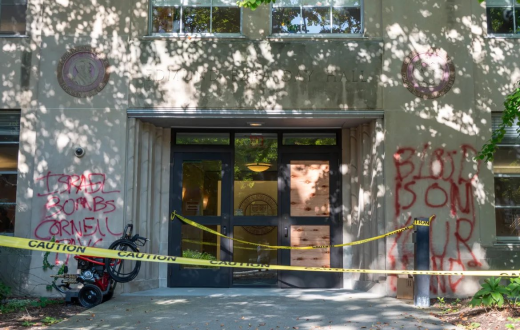 قام نشطاء مؤيدون لفلسطين في بداية العام الدراسي الجديد، برسم شعارات مثل "قنابل إسرائيلية" و"الدم على يديك" باللون الأحمر على مدخل قاعة داي هول في جامعة كورنيل، وحطموا زجاج الباب الأمامي. النشطاء، الذين اختاروا عدم الكشف عن هويتهم، أشاروا إلى أن هذه الأفعال كانت وسيلة لجعل صوتهم مسموعًا.
