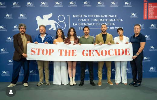 أدان أكثر من 700 مخرج سينمائي في مهرجان فينيسيا السينمائي إدراج فيلمين إسرائيليين شاركت في إنتاجهما شركات داعمة للعدو، ومتواطئة في جريمة الإبادة الجماعية التي ترتكب في غزة، وقد عبّر المخرجون عن تضامنهم مع فلسطين من خلال رفعهم الأعلام الفلسطينية واللافتات الداعمة لفلسطين.
