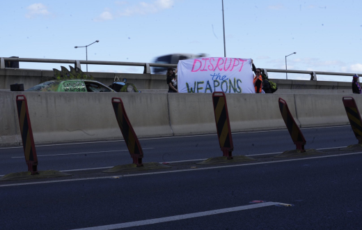 عرقل المظاهرون المتضامنون مع غزة عمليات تسليم الأسلحة لمعرض القوات البرية التجاري في ملبورن. فقاموا بإغلاق مخرج شارع مونتاغيو على طريق ويست جيت السريع, لمنع عملية توصيل الدبابات والأسلحة للمعرض الذي ينظمه تجار الحرب في مركز مؤتمرات ملبورن، بتمويل من حكومة فيكتوريا.