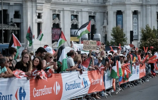 رغم أن سباق "فويلتا إسبانيا" يُعتبر من بين أهم السباقات في عالم رياضة الدراجات، ويأتي في المرتبة الثالثة بعد سباق فرنسا "تور دو فرانس" و"جيرو دي إيطاليا"، إلا أنه تعرض لانتقادات واسعة بسبب تمويله من شركة "كارفور" المتهمة بالتواطؤ في الإبادة الجماعية المستمرة في غزة منذ أكتوبر، مما حوّل الحدث الرياضي إلى ساحة احتجاج من قبل المؤيدين الفلسطينيين.