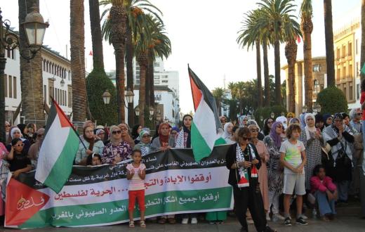 ازدحمت شوارع الرباط أمس الثلاثاء بالمحتجين المنددين بالمجزرة التي ارتكبها الاحتلال الإسرائيلي في مواصي خانيونس، وذلك أمام مقر البرلمان المغربي بوقفة نظمتها الجبهة المغربية لدعم فلسطين ومناهضة التطبيع، حيث حمل المتظاهرون الأعلام الفلسطينية ولافتات تندد بالتواطؤ الغربي والخذلان العربي، وهتفوا بشعارات تضامنية مثل "أوقفوا الإبادة الجماعية ضد الشعب الفلسطيني" و"أوقفوا التطبيع مع الكيان الصهيوني".