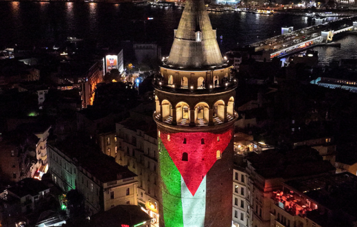 تزين برج غلاطة الشهير بمدينة إسطنبول التركية، بصور ضوئية لعلم فلسطين بتنفيذ من وزارة الثقافة والسياحة للفت الانتباه إلى الإبادة الجماعية الإسرائيلية في غزة، جاء ذلك إلى جانب تظاهرات كبيرة حاشدة في عدد كبير من الولايات التركية من بينها أنقرة وإسطنبول وقونيا وأماسيا وسامسون وشانلي أورفة وسيفاس وبيتليس وكوجالي تضامنًا مع غزة ورفضًا للحرب الإسرائيلية على القطاع.