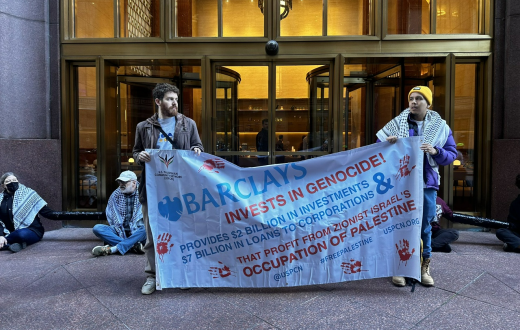 أغلق المتظاهرون جميع مداخل المقر الرئيسي لبنك باركليز في وسط مدينة شيكاغو، مما حال دون دخول مئات الموظفين إلى أماكن عملهم. جاء هذا الإغلاق احتجاجًا على استثمارات باركليز في شركات تزود “إسرائيل” بالأسلحة والتكنولوجيا العسكرية، حيث طالب المتظاهرون البنك بسحب استثماراته كجزء من حملة المقاطعة وسحب الاستثمارات وفرض العقوبات، ارتبط اثنا عشر متظاهرًا ببعضهم عند المداخل، فيما ردد آخرون الهتافات الداعية لإنهاء الإبادة الجماعية في غزة. حاصرت الشرطة المنطقة واعتقلت المتظاهرين، بينما تعهد المنظمون بمواصلة النضال من أجل حرية فلسطين.