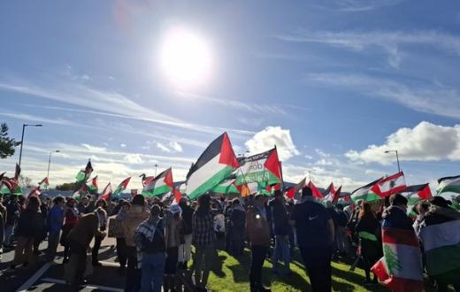 احتشد عدد من المتظاهرين المؤيدين للقضية الفلسطينية في مطار شانون بأيرلندا احتجاجًا على استخدامه لنقل الأسلحة التي تُستخدم في الحرب الإسرائيلية بقطاع غزة، ورفع المحتجون شعارات تدين الحكومة الأيرلندية لتسهيلها مرور المجرمين والأسلحة عبر أراضيهم، وأكدوا على ضرورة وقف هذه الممارسات لحماية حقوق الفلسطينيين.