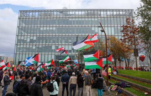 نظمت حركة التضامن مع فلسطين في اسكتلندا مظاهرة أمام مقر هيئة الإذاعة البريطانية “بي بي سي” في غلاسكو، احتجاجًا على تواطؤ وسائل الإعلام الغربية في التغطية المنحازة للهجوم الإسرائيلي على غزة. وأشار المتظاهرون إلى أن هيئة الإذاعة البريطانية وغيرها من وسائل الإعلام الكبرى تروج لروايات مضللة تسيء لفلسطين، ما دفع الجماعات المؤيدة لفلسطين إلى انتقاد هذه التغطية غير العادلة.