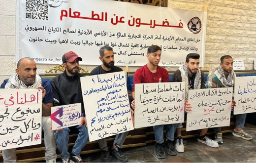 شارك المضربون عن الطعام في الأردن في وقفة احتجاجية أمام سفارة الاحتلال في عمّان، لتجديد مطالبهم برفع الحصار الإسرائيلي عن غزة وإدخال المساعدات الإنسانية للقطاع. وقد تعرض ثلاثة شبان من المضربين، الذين دخل إضرابهم يومه الثامن على التوالي، لحالات إعياء بسبب انقطاع الرعاية الطبية المطلوبة للحفاظ على سلامتهم، مؤكدين أن التعب لن يمنعهم من الاستمرار في إضرابهم الهادف إلى الضغط على السلطات الأردنية لطرد سفارة الاحتلال وإغلاق المعابر البرية التجارية أمامه.