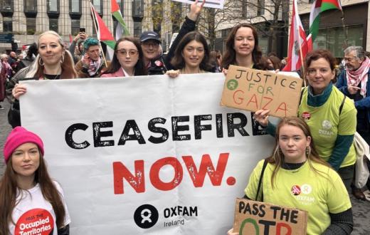 شاركت منظمة أوكسفام الأيرلندية في مظاهرة نظمتها حملة التضامن مع فلسطين في مدينة دبلن، احتجاجًا على تصاعد وتيرة الحرب في غزة ولبنان. وخلال المظاهرة، طالبت المنظمة بوقف إطلاق نار دائم وفوري، ورفع المشاركون الأعلام الفلسطينية ولافتة كبيرة كُتب عليها: "أوقفوا إطلاق النار الآن".