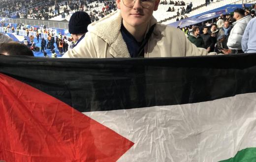 رفع الصحافي الفرنسي إيمانويل هوارو علم فلسطين أثناء مباراة بين منتخب بلاده ومنتخب الاحتلال، متحديًا الإجراءات الفرنسية التي قيدت رفع الأعلام والرموز الفلسطينية. وأكد هوارو أن الاجراءات التقييدية لن تستطيع أن تردع التضامن مع فلسطين، ولن تخفي حقيقة إبادة الجيش الإسرائيلي لأهل غزة.