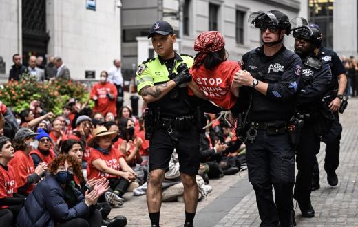 نظم متظاهرون مؤيدون للقضية الفلسطينية اعتصامًا داخل مقر صحيفة "نيويورك تايمز" في ولاية نيويورك، احتجاجًا على ما وصفوه بانحياز الصحيفة إلى كيان الاحتلال في تغطيتها للعدوان على غزة، ودخل المحتجون بهو المبنى ورفعوا شعارات تطالب بوقف إطلاق النار ما أدى إلى استدعاء الشرطة على الفور واعتقال عدد من النشطاء.