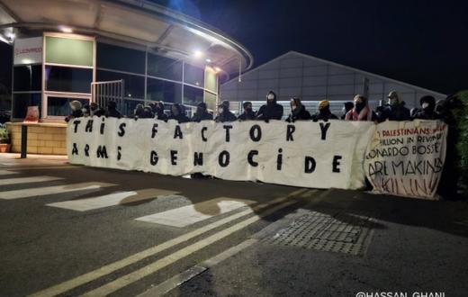 أغلق متظاهرون مؤيدون لفلسطين مداخل موقع شركة ليوناردو للأسلحة في مدينة أدنبرة الأسكتلندية، والتي تنتج نظام الاستهداف لطائرة “إف-35“ المقاتلة، والتي يستخدمها كيان الاحتلال حاليًا لقصف قطاع غزة، وحمل المتظاهرون لافتة ضخمة كتب عليها “هذا المصنع يسلّح الإبادة”.