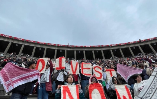 رفع طلاب مؤيدون لفلسطين لافتات تدعو لسحب الاستثمارات وارتدوا الكوفية خلال المباراة السنوية بين جامعتي هارفارد وييل. واستغل الطلاب هذا الحدث الذي جمع آلاف الطلاب والخريجين للضغط على الجامعتين من أجل إنهاء تواطئهما في الإبادة الجماعية، وذلك عبر سحب استثماراتهما من الاحتلال الإسرائيلي.