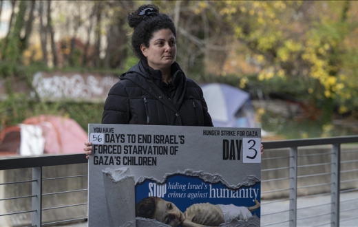 دخلت الناشطة الأمريكية “حزامي برمدا” يومها الثالث من الإضراب عن الطعام بالقرب من وزارة الخارجية الأميركية والبيت الأبيض، الأربعاء، مطالبة بإنهاء تجويع “إسرائيل” للفلسطينيين في غزة على الفور.