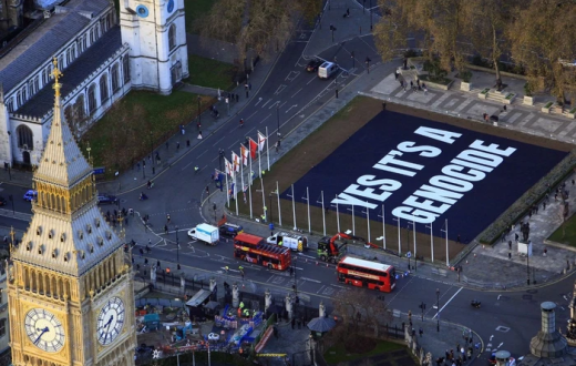 رفع متظاهرون مؤيدون لفلسطين لافتة ضخمة مناهضة للاحتلال خارج البرلمان البريطاني في لندن أمس الأربعاء، مكتوب عليها: "نعم إنها إبادة جماعية"، وقالت شرطة العاصمة إن الاحتجاج انتهى ولم يتم إلقاء القبض على أحد، وفي بيان تزامن مع الاحتجاج، قال البروفيسور آموس جولدبرج، المؤرخ الإسرائيلي: "نعم، إنها إبادة جماعية، وبمجرد التوصل إلى هذا الاستنتاج، لا يمكنك أن تظل صامتًا، لا يجب أن تبدو مثل الهولوكوست لتكون إبادة جماعية، كل إبادة جماعية تبدو مختلفة، ولا تنطوي جميعها على قتل الملايين أو المجموعة بأكملها"، وأشار جولدبرج إلى أن الحكومة الإسرائيلية والجيش ووسائل الإعلام أظهرت "مؤشرات واضحة على نيتها تدمير غزة".