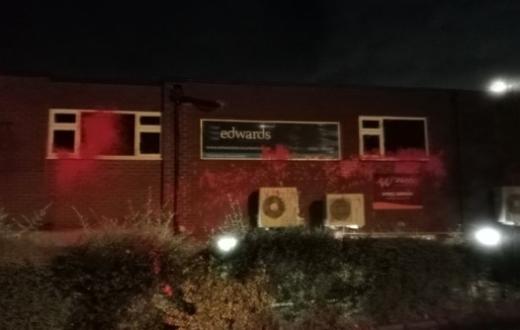 استهدف نشطاء من "حركة فلسطين" شركة "إدواردز" للمحاسبة وتدقيق الحسابات التابعة لشركة "إلبيت"، وذلك لتعاونها في الإبادة الجماعية الجارية في قطاع غزة منذ أكثر من 400 يوم، حيث قام النشطاء بتلطيخ واجهات الشركة بالطلاء الأحمر للفت الأنظار حول إراقة الدماء المستمرة بحق الفلسطينيين، وقالت الحركة في تغريدة لها على منصة "إكس" بعد الاستهداف "إذا كنت تتعاون مع إلبيت وتسهل الإبادة فتوقع مواجهة حركة فلسطين".