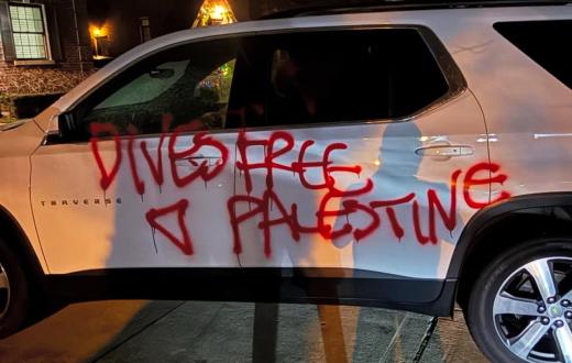 قام متظاهرون مؤيدون لفلسطين بتلطيخ مركبة مسؤول جامعة ميشيغان، جوردان آكر، وكتبوا شعار "فلسطين حرة" على المركبة، كما رسموا مثلثًا أحمر مقلوبًا عليها. جاء هذا الفعل في سياق احتجاجات طلابية مستمرة منذ شهور، رفضت خلالها الجامعة سحب الاستثمارات من الشركات التي تدعم كيان الاحتلال.
