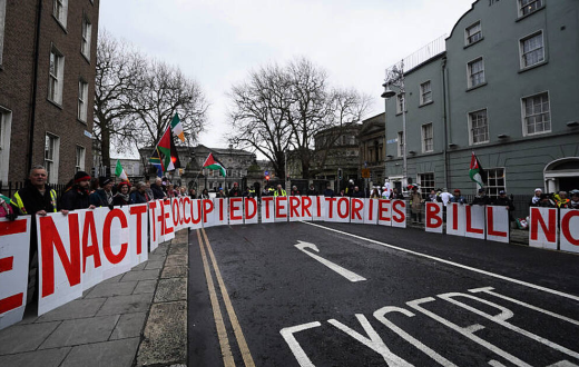 اجتمع البرلمان الأيرلندي الجديد لأول مرة وسط احتجاجات مؤيدة لفلسطين خارج مقر لينستر هاوس، حيث دعا المتظاهرون إلى تمرير مشروع قانون يحظر استيراد منتجات المستوطنات الإسرائيلية غير القانونية. وفي خطاب رئيس الوزراء سايمون هاريس أمام البرلمان، أكد أن أيرلندا لن تخضع لأي ضغوط تمنعها من الدعوة للسلام في غزة واحترام القانون الدولي، مشددًا على وحدة المجلس في مواجهة المعاناة الإنسانية في غزة ودعمه لوقف إطلاق النار وتقديم المساعدات الإنسانية.