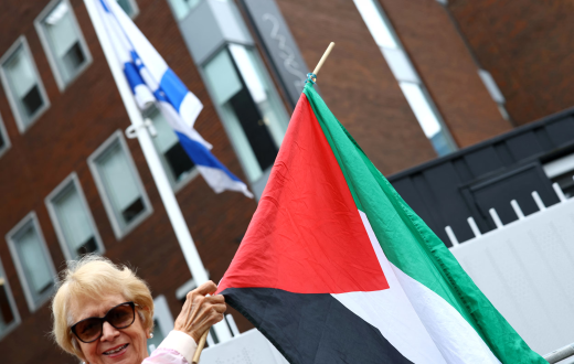 تجمع مؤيدو فلسطين خارج السفارة الإسرائيلية في دبلن للاحتفال بقرار إغلاق السفارة، حاملين الأعلام الفلسطينية ولافتات داعمة لفلسطين، ومؤكدين تضامنهم مع الشعب الفلسطيني في مواجهة الاحتلال الإسرائيلي.