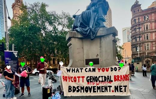 أقامت مجموعة "Sydney Palestine Actions" وقفة تضامنية لدعم فلسطين، حيث تم توزيع منشورات تدعو إلى المقاطعة وسحب الاستثمارات، وعبر المشاركون عن فرحتهم بوجود سبعة من الفلسطينيين، بما في ذلك منظمي حملة "فلسطين حرة" في ملبورن، حيث رقصوا الدبكة معًا.