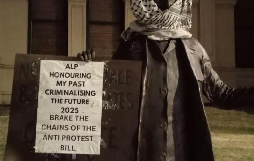 احتج أنصار فلسطين عند القاعة التجارية في مدينة ملبورن الأسترالية، احتجاجًا على استمرار دعم كيان الاحتلال في جرائمه الوحشية بقطاع غزة، وللمطالبة بفرض عقوبات على الاحتلال، وقام المحتجون بوضع دمى الأطفال أمام المبنى ووشحوا تمثال المبنى بالكوفية الفلسطينية.