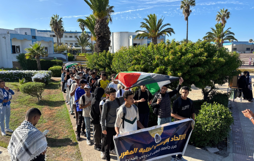 أعلن الاتحاد الوطني لطلبة المغرب، يوم الأحد، عن تنظيمه أكثر من 457 فعالية ومظاهرة طيلة العام الماضي، دعمًا لقطاع غزة في مواجهة الإبادة الإسرائيلية المستمرة. وقال الاتحاد، في بيان نشره على موقعه الإلكتروني، إن الفعاليات شملت إضرابات طلابية، مسيرات، وقفات احتجاجية، بالإضافة إلى الحلقات والندوات، المهرجانات الخطابية، والأنشطة العلمية والثقافية والرياضية. كما أضاف الاتحاد أنه نظم 3 إضرابات وطنية شاركت فيها 88 كلية.
