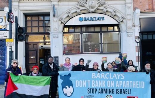 نظمت مجموعات مؤيدة لفلسطين وقفة احتجاجية أمس السبت ضد بنك "باركليز"، في مدينتي وليزدن، وهارو بالمملكة المتحدة، لاستمراره في تمويل الإبادة من خلال الاستثمار في شركة الأسلحة الإسرائيلية "إلبيت سيستمز"، وحمل المحتجون لافتات مناهضة للبنك ورفعوا أعلام فلسطين.