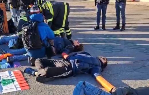 حاصر 40 ناشطًا بالتعاون مع "حركة فلسطين" شركة ليوناردو، التي تزود كيان الاحتلال الإسرائيلي بأجزاء طائرات “الأباتشي” وقاتلات “إف-35” والتي تستخدم في حرب الإبادة ضد الفلسطينيين بقطاع غزة. وليوناردو، شركة إيطالية متعددة الجنسيات، يقع مقرها الرئيسي في روما، متخصصة في مجال الفضاء والدفاع والأمن.
