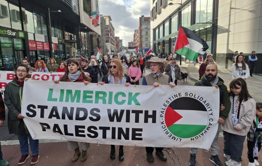 خرج أنصار فلسطين في مدينة ليمريك الأيرلندية، في إطار حملة "التضامن مع الشعب الفلسطيني"، للمطالبة بإنهاء سياسة الفصل العنصري التي ينتهجها كيان الاحتلال ضد الفلسطينيين في مختلف أماكن تواجدهم، والاحتلال والحصار، وللمطالبة أيضًا بالحرية لفلسطين.