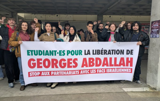 نظم طلاب مؤيدون لفلسطين مظاهرة احتجاجية في معهد العلوم السياسية بمدينة تولوز الفرنسية للمطالبة بالإفراج عن المعتقل الناشط جورج عبد الله والدعوة إلى مقاطعة المؤسسات الإسرائيلية.