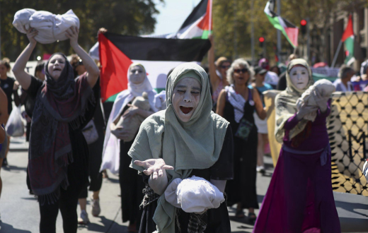 سارت آلاف النساء المؤيدات لفلسطين في شوارع مدينة سانتياغو مرتديات ملابس ملطخة بالغبار وهن يحملن جثث رمزية لأطفال لإظهار التضامن مع الفلسطينيات في قطاع غزة اللواتي شهدن إبادة جماعية لمدة 15 شهرًا، ولوحن بأعلام فلسطين وحملن لافتات مناهضة للاحتلال وللدعم الأمريكي له.