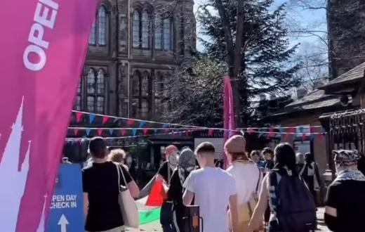شهد اليوم المفتوح في جامعة غلاسكو احتجاجًا واسعًا من الطلاب، الذين تجولوا في أروقة المبنى الرئيسي محذرين الطلاب الجدد من الالتحاق بالجامعة بسبب استثماراتها في شركات الأسلحة وتورطها في الإبادة الجماعية في فلسطين. كما قام الطلاب بتعطيل ندوة أكاديمية حول هندسة الطيران، مطالبين الجامعة بسحب استثماراتها في شركات الأسلحة التي تبلغ قيمتها 6.8 مليون جنيه إسترليني