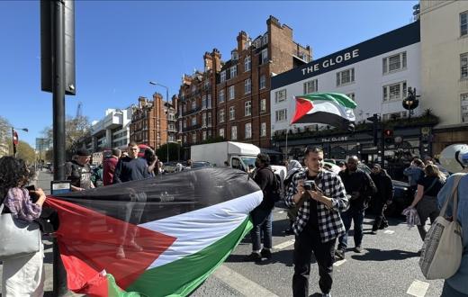 أغلقت مجموعة "يوث ديماند" المعروفة بتظاهراتها المؤيدة لفلسطين في بريطانيا، أمس السبت، شارع ماريليبون الرئيسي في العاصمة لندن أمام حركة المرور، وذلك في إطار دعواتها لوقف إطلاق النار في غزة، وتضامنًا مع أعضائها الذين تعرضوا للتوقيف. وأغلق المحتجون تقاطع الشارع مع شارع بيكر الشهير، مرددين شعارات من قبيل "فلسطين الحرة"، و"وقف إطلاق النار الآن"، و"كفوا عن قصف المستشفيات والأطفال وغزة".