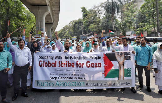 وزع طلاب البنغلاديش منشورات عبر منصات التواصل الاجتماعي يوم الأحد، يدعون يها زملاءهم للمشاركة في الإضراب العالمي لأجل فلسطين، وقام طلاب جامعة دكا بتنظيم مسيرة مساء الأحد تضامنًا مع القضية الفلسطينية. في الوقت نفسه، دعا تحالف طلاب الجامعات الخاصة في بنغلاديش (PUSAB) إلى مظاهرة أمام مركز أوتارا BNS اليوم.