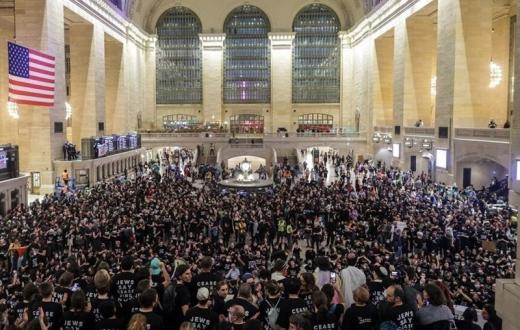 وجاء ذلك بعد أن شهدت تظاهرة حاشدة نظّمها محتجون مؤيدون لفلسطين، طالبوا بوقف الدعم الأمريكي لكيان الاحتلال ووقف الإبادة في قطاع غزة. ورفع المتظاهرون لافتات وشعارات تدعو لإنهاء العدوان، وشارك في الاحتجاج نشطاء وطلاب من مختلف أنحاء المدينة، ما أدى إلى توقف حركة القطارات وتعليق جزئي في الخدمات.