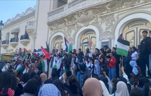 جاء ذلك بتنظيم من جمعية "أنصار فلسطين بتونس" التي دعت إلى وقفة تضامنية مع قطاع غزة وموكب تأبين للطالب فارس خالد، الذي ارتقى الاثنين، وهو يرفع العلم الفلسطيني على بناية عالية في إحدى جامعات منوبة غرب العاصمة تونس. وتجمع عشرات المشاركين في الوقفة التضامنية بينهم طلاب أمام المسرح البلدي وسط العاصمة تونس، رافعين العلمين الفلسطيني والتونسي وصورًا للطالب فارس خالد.