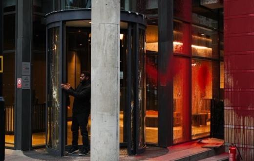 أقدم النشطاء على تلطيخ الواجهة الخارجية لمكتب الشركة بالطلاء الأحمر وتحطيم نوافذه الزجاجية، في خطوة احتجاجية رمزية تندد باستمرار الإبادة الجماعية التي تُرتكب بحق المدنيين في قطاع غزة.